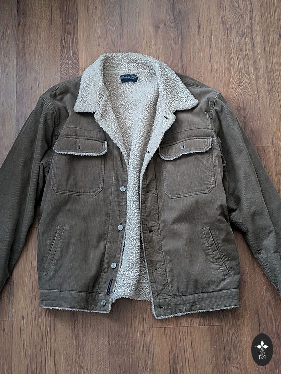 Ļoti elegants mētelītis, pa mazu palicis. :( Zelta ķēdīšu detaļas aiz tilla auduma, neizceļas tik ļoti un neķeras nekur, noņemama apkaklīte, aizdare ar spiedpogām, zem uzšūtajām kabatiņām ir velvienas ar slēpto aizdari, iekšpusē neliela krūšu kabatiņa ar podziņu, šuvums mazliet uz augumu.