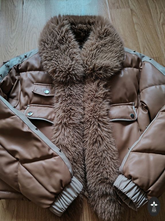 Stylish cardigan. Barely worn. For spring and fall. The wool collar can be removed. Size between the breasts 50x2. Length 67 cm.