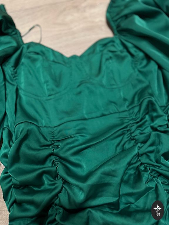 Perfekta kokteiļkleita, kura neatstās vienaldzīgu nevienu. Izceļ augumu, skaistas līnijas un asimetrisks griezums. Nesanāca uzvilkt un daudzas lietas pēc bērna vairs neder.derēs uz S/M izmēru. Izcila kvalitāte, kokvilnas odere, audums nav caurspīdîgs. Ražota Itālijā, no kurienes arī sūtīta.