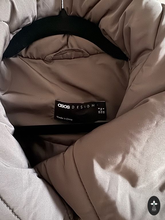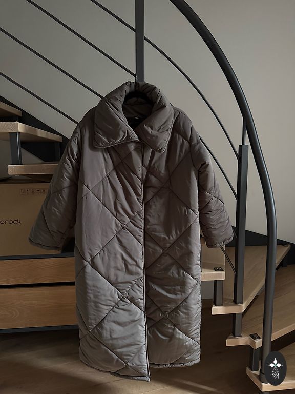 Tamsiai mėlynos spalvos. Yra kišenės ir gobtuvas. Ant etiketės nurodyta, kad užpildas yra bambuko pluoštas. Striukės ilgis 99 cm. Rankovių ilgis 67 cm. Krūtinės apimtis 101 cm. Pirkta už 190 €.