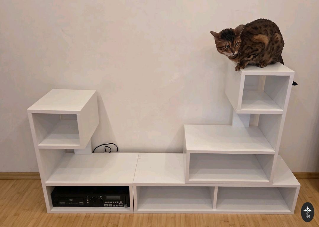 Pārdodu Itālijā ražotu koka paneļu sienu, kas paredzēta plauktu stiprināšanai. Komplektā nāk nerūsējošā tērauda kronšteini uz kuriem var novietot 3 plauktus. Tiek pārdota tikai siena ar kronšteiniem bez plauktiem (attēlā redzamais palukts nav pieejams). Oriģināli palukti ir bijuši no stikla, bet tos var izgatavot arī no cita materiāla. Sienas izmēri H2x2metri.