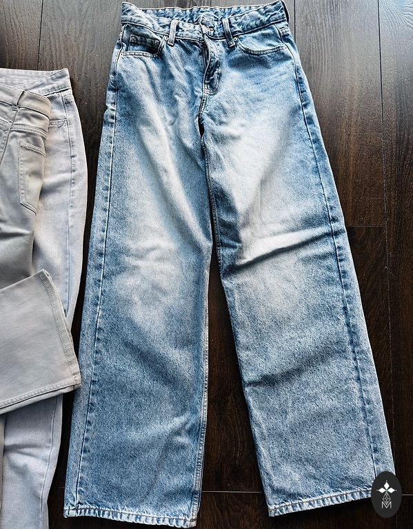 Mėlyni džinsai merginai, kurios dydis yra S. Senas džinsinis audinys, gamintojo padarytos dėvėjimo žymės, o ne mano - nuotrauka iš parduotuvės )))