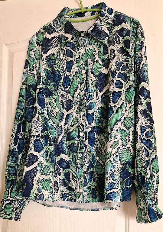 Graži palaidinė su 3/4 ilgio rankovėmis. Po apykakle yra dekoratyvinis elementas, kurį galima nuimti.