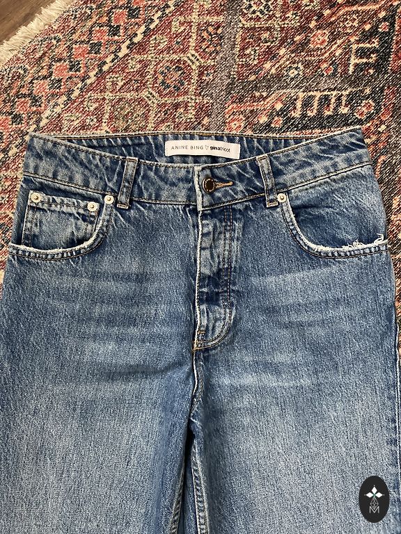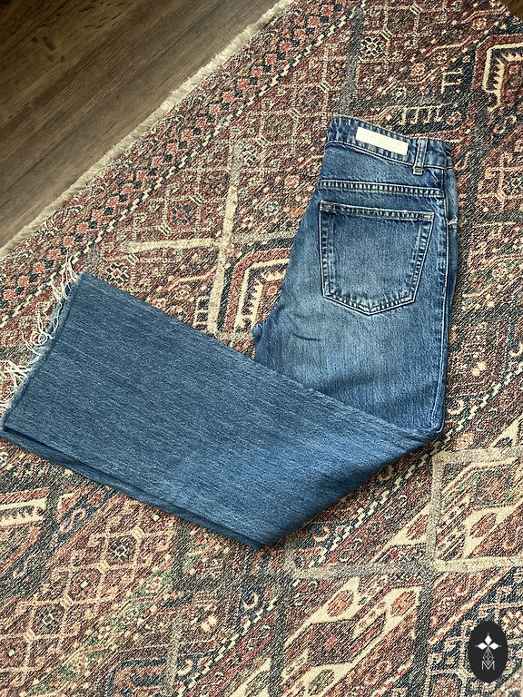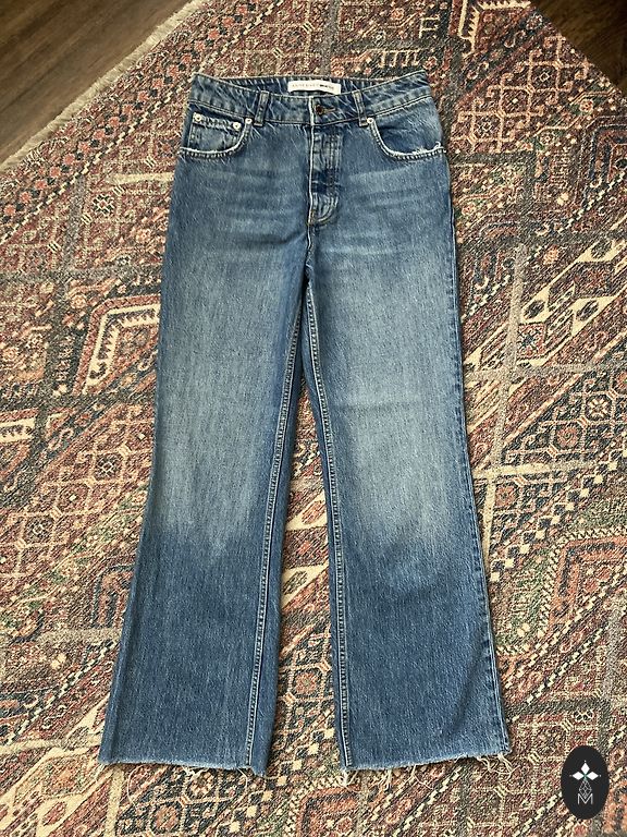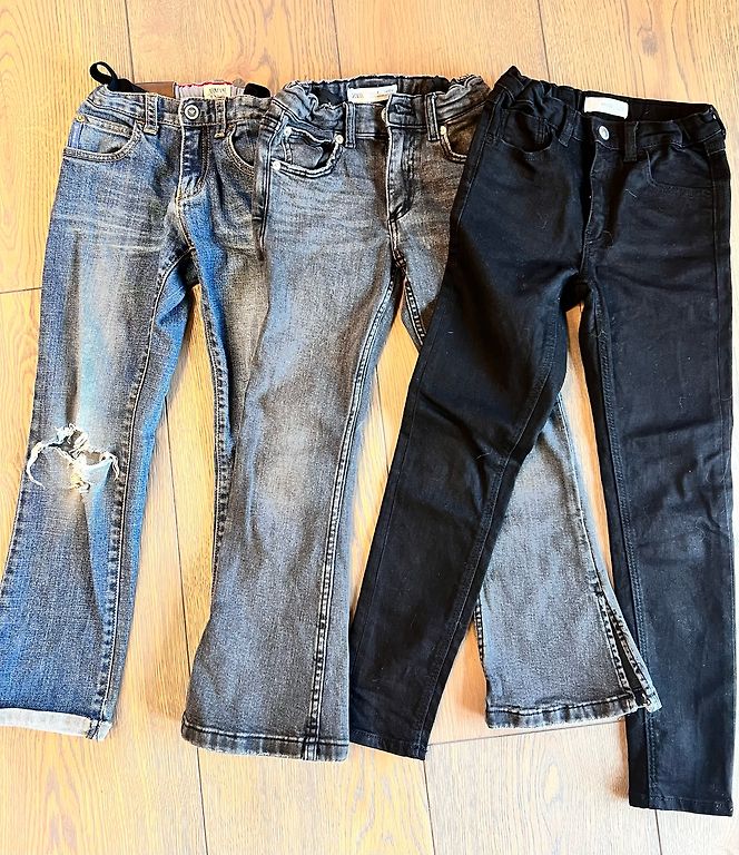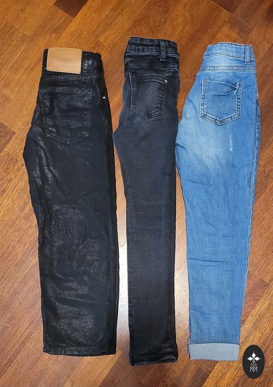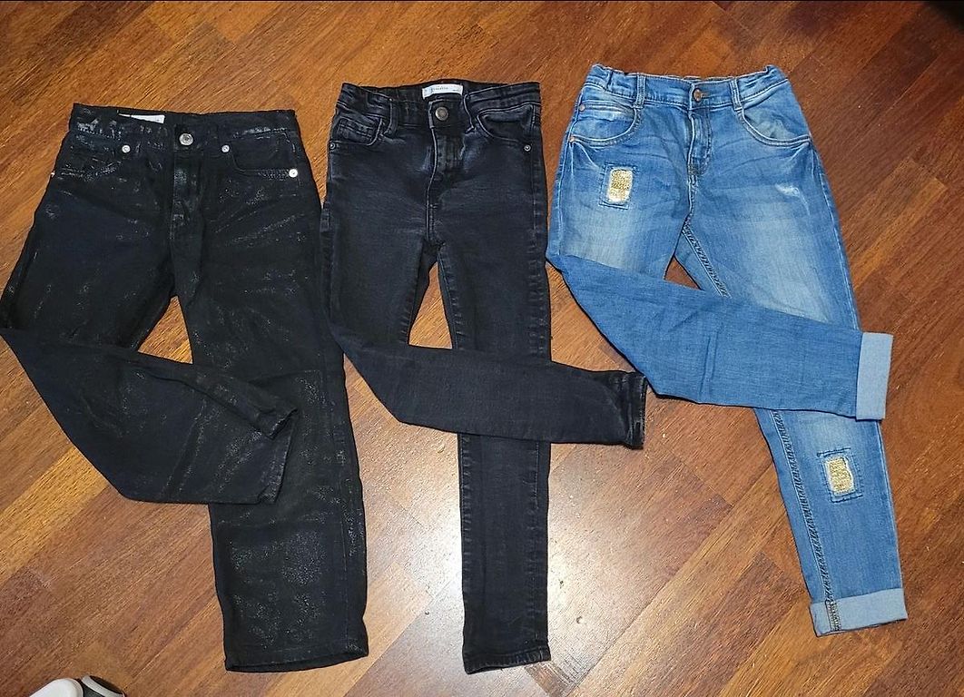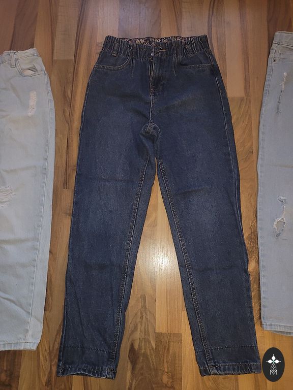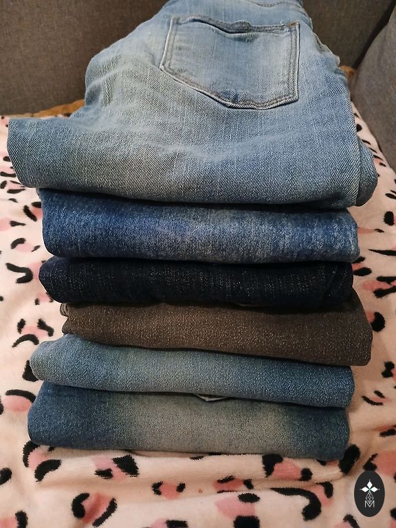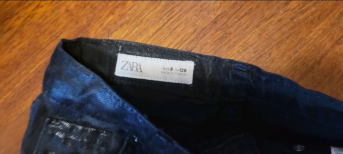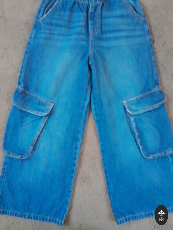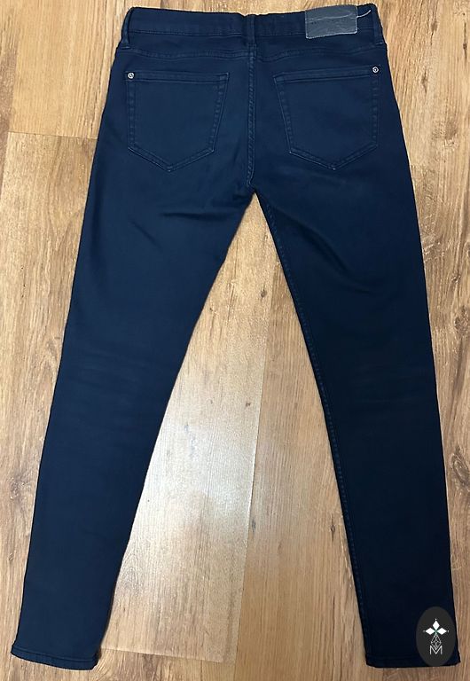 Flexible slim-fit jeans. Used in good condition. The color in real life is not as intense... more dark blue.