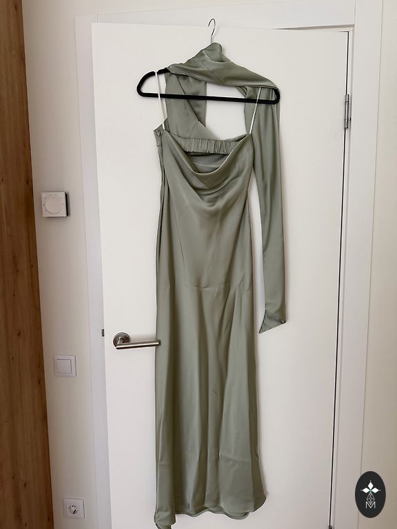 Kleita ir vienu reizi vilkta, ideālā stāvoklī. Kupla kleitas svārku daļa, vairākās kārtās.