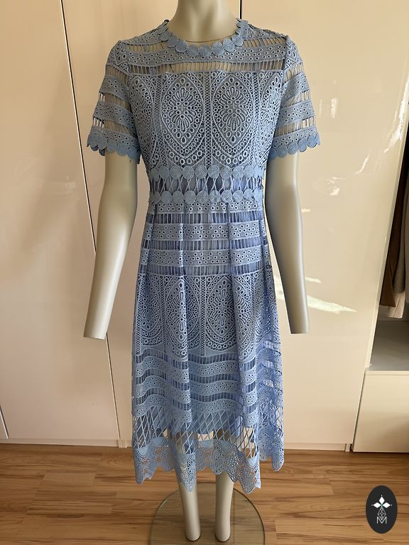 Suknelė su pamušalu, krūtinė 68, talėja 58, klubai 70, ilgis 108. Įsigyta dėvėta, per didelė.