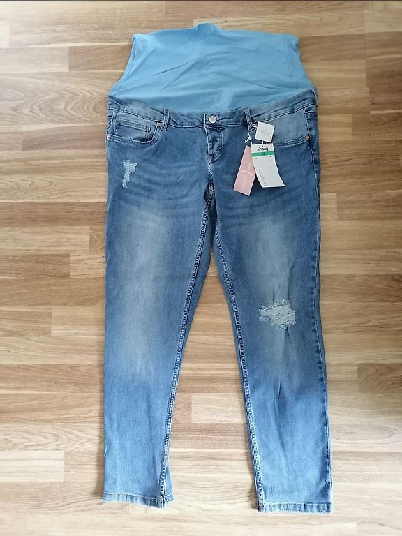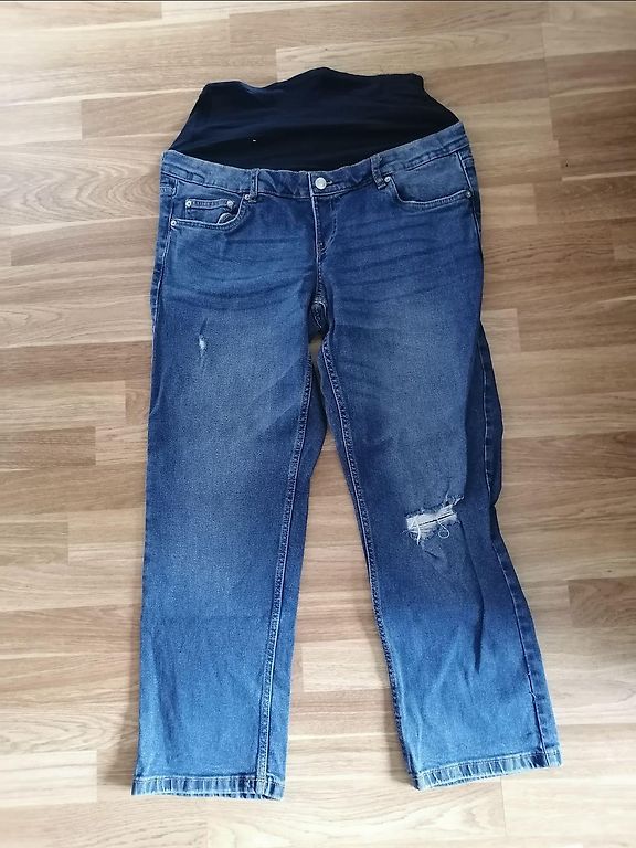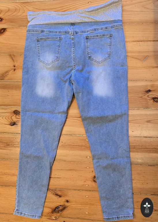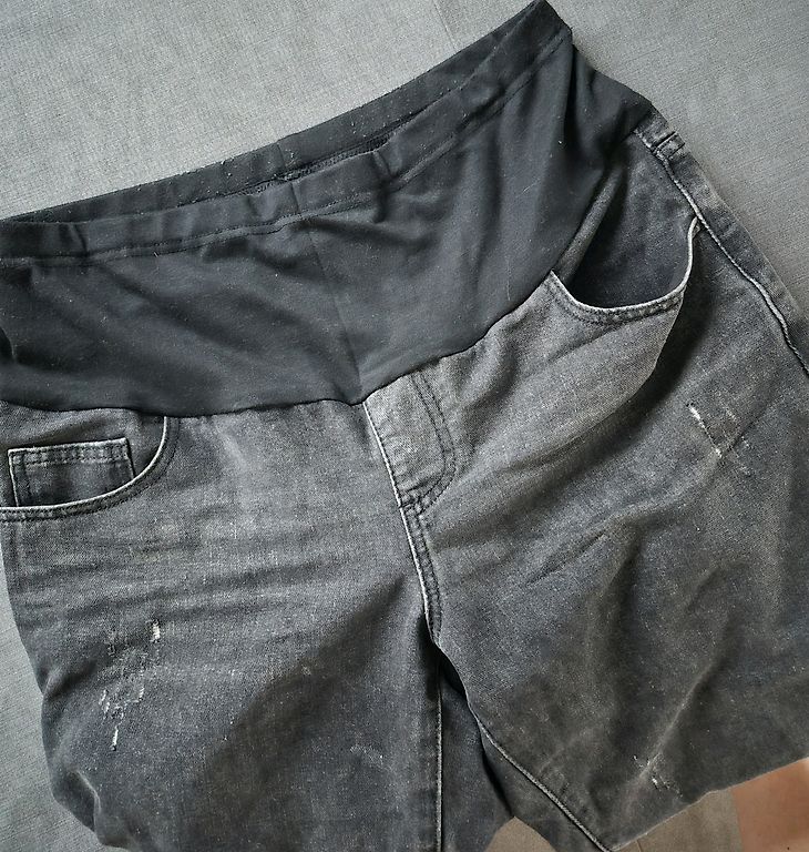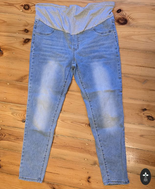 Selling new, only tried-on maternity pants. The pants are labeled XL, but will fit size L. The denim part is firm, not stretchy.