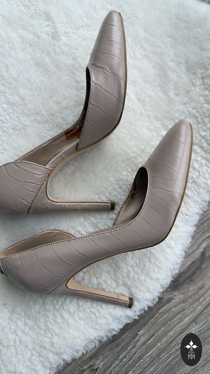 Punased nahast kingad (kaasa arvatud tallanahk), konts 11 cm. Kasutamise tunnused, kuid heas seisukorras ja ainus defekt ühel kingal on ninast altpoolt lakikild ära. Pildil näha. Kõndides ülaltpoolt ei ole näha. Suurus kitsas 37, tundub 36. (sisetald terava ninaga 24.5 cm liiga väike) Proovida saab Ziepniekkalnas.