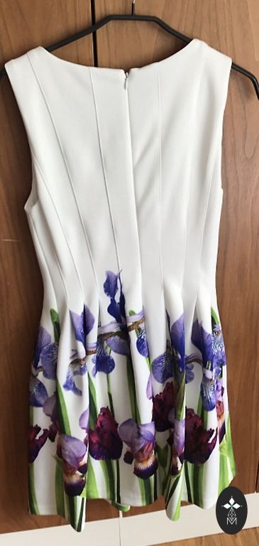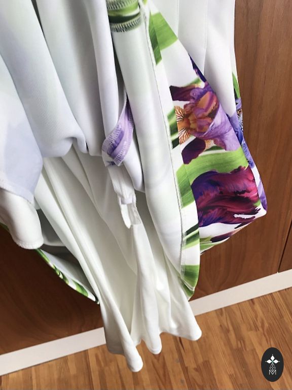 Jauna kleita ar volānu uz viena pleca.