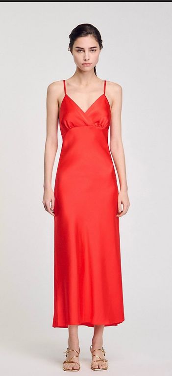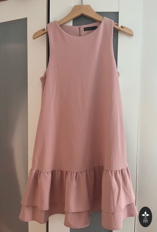 Labai graži, iškilminga, vieną kartą vilkta fuksijos spalvos suknelė. Komplekte su dirželiu. 36 dydis. Ilgis nuo peties 150 cm, per liemenį 32 cm, po pažastimis 42 cm.