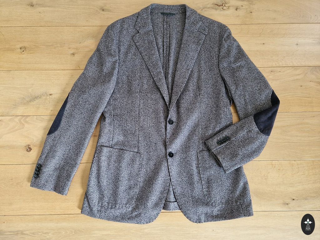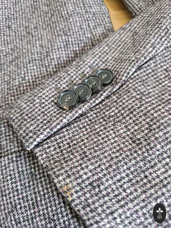 Klasikinio kirpimo, kokybiškas ir subtilus švarkas. Šilkinė vilna, 90% vilna, 10% šilkas, audinys labai minkštas, plonas, malonus liesti. Mėlynai pilkos spalvos pamušalas. Audinys juodas su subtilia juostele, kuri sukurta keičiant audimo kryptį, o ne su kita spalva 😊 Tiks tiek stilingai moteriai, tiek vyrui. ~M dydis