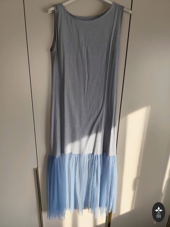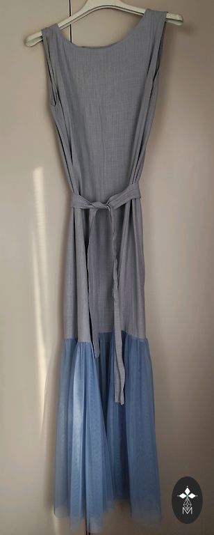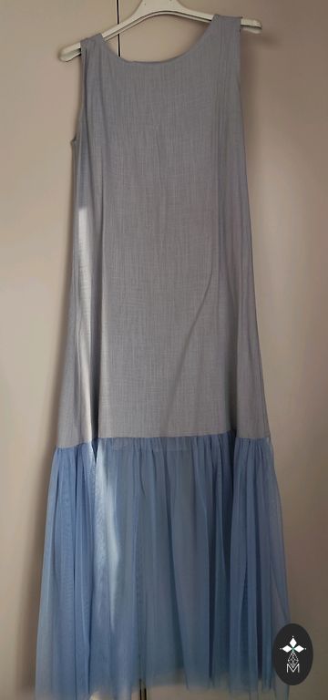 Нежнейший батист, нижнее платье шёлк, рукава 3/4, сбоку молния, очень нежное. Небольшое пятнышко внизу