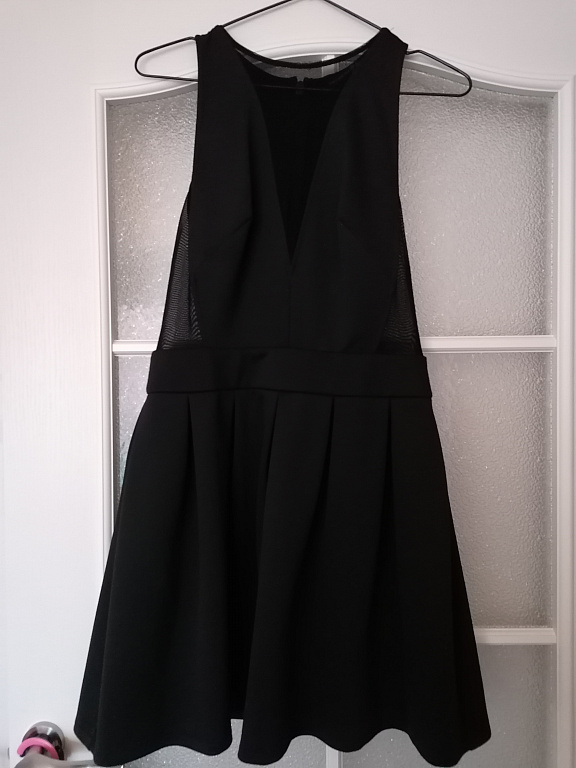 Kleita ir šķēlums un caurspīdīgas tilla detaļas - kreisā roka un priekšpuse ir no tilla. Vilkta vienu reizi ballē.