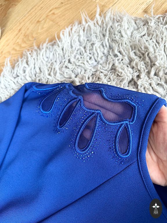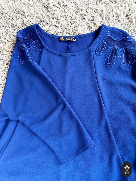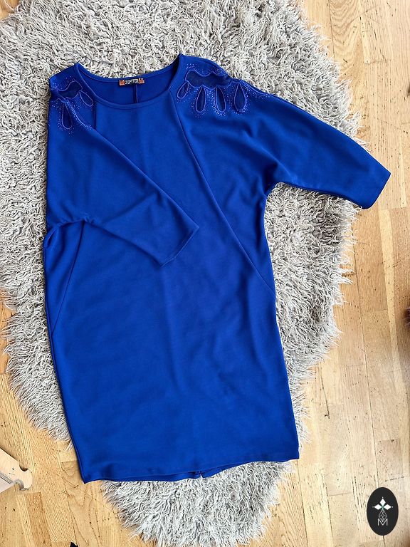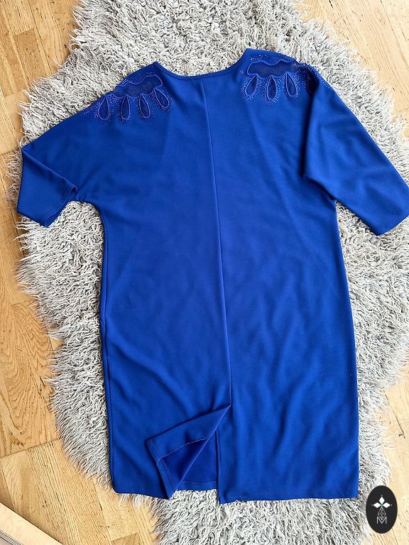 Skaista zilas krāsas kleita. Viegls audums, cauri nespīd. Garums no pleca 88cm, pleciņus var nolaist. Uzvilkta vienu reizi uz pasākumu. M izmērs, der arī uz S, kā over-size.