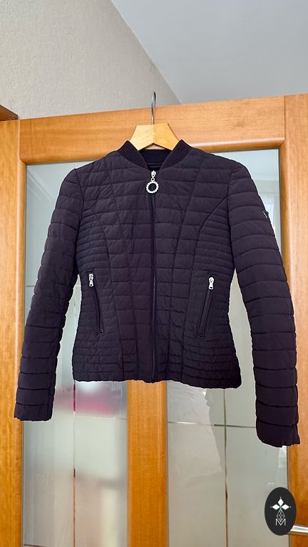 Izmērs XS. Garums 57 cm, starp padusēm platums 40 cm, pleci 35 cm, viduklis 35 cm, apakšmala 43 cm, piedurkne no pleca 61 cm, materiāls padodas 🌸 Tiekos tikai Purvciemā. Uz centru nedodos.