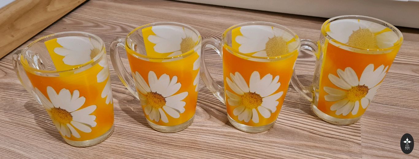 8 чашки и 8 подставок. Чашки имеют диаметр 7,8 см и высоту 6 см. Подставки разные, но все в одном стиле. 1 имеет диаметр 16 см, 2 имеют диаметр 14 см, 2 имеют диаметр 13 см и 3 имеют диаметр 12,5 см. Закаленное стекло, которое не бьется. Хорошо подойдет как для дома, так и для офиса.