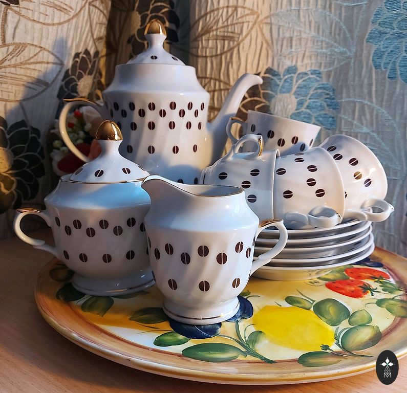 Pārdodu kafijas krūzīti ar šķīvīšiem.