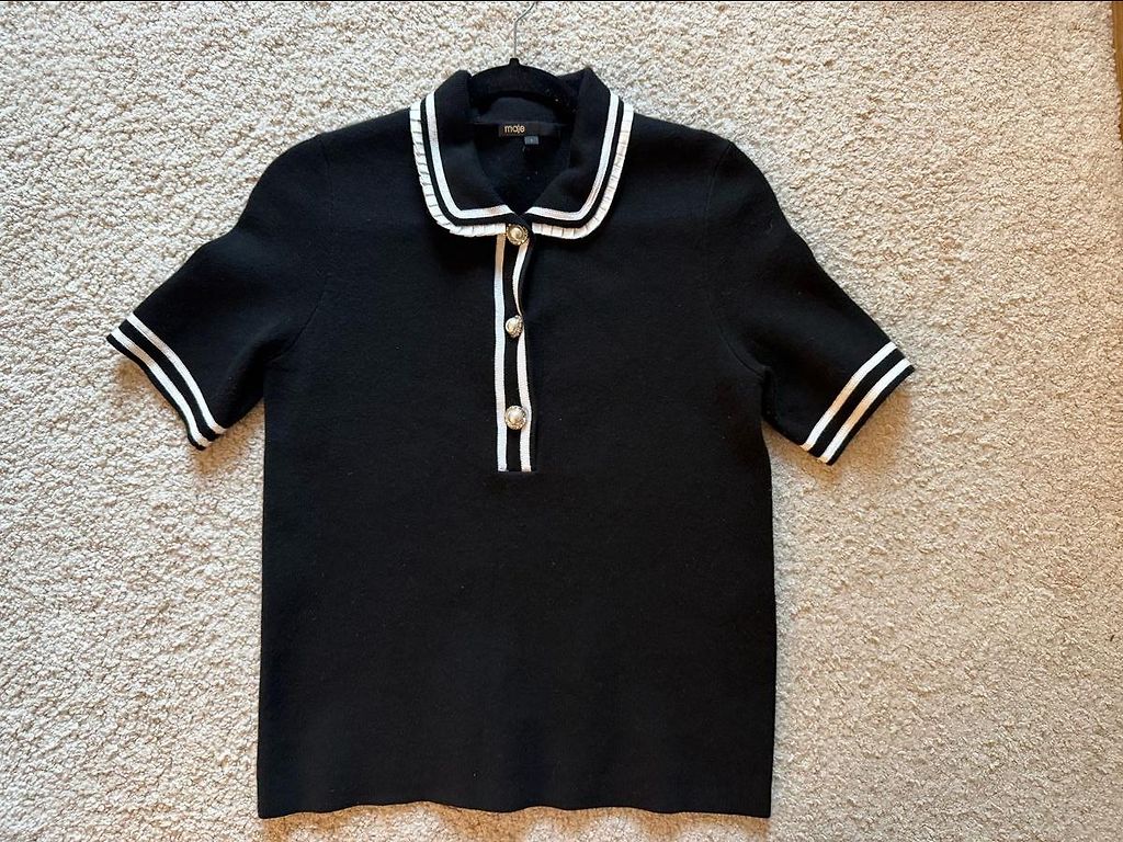 Skaista, brīva blūze ar sasienamu puški, kas padara kopskatu efektīvu! Izcilā stāvoklī. Izmērs norādīts XS, bet droši var vilkt arī S un M, jo fasona ir brīvs.