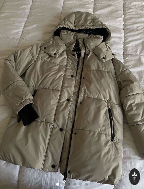 Tiks tinkamas ir S dydžiui, pusiau ilgas, nuimamas gobtuvas. Pirkau Zalando.
