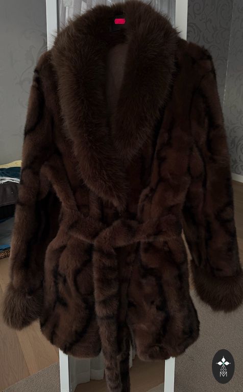 Uus nutria kasukas, varrukatel ja krael on hõberebase karusnahk. Näeb seljas suurepärane välja, fotod ei anna edasi värvi ja toote kvaliteeti. Kasukas külglõhikutega. Valmistatud tervest karusnahast.