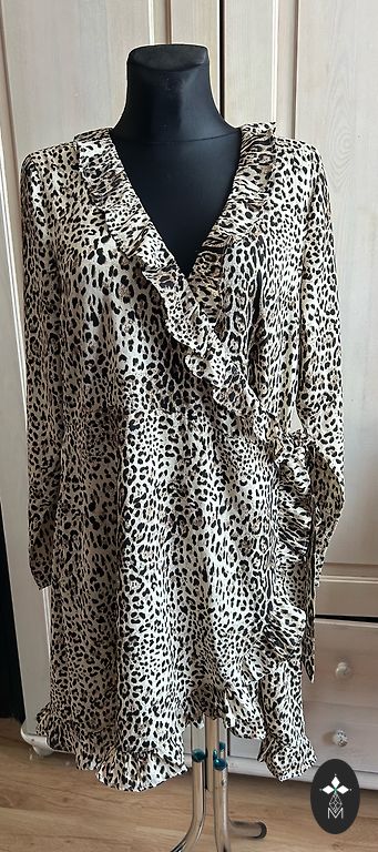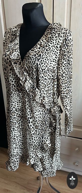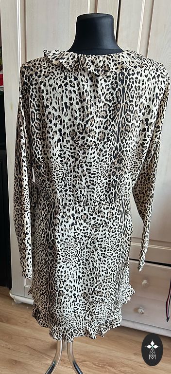 Turkish-made dress, size 42. Length 115 cm, bust unstretched 102 cm. Polyester 65%, viscose 30%, lycra 5%.