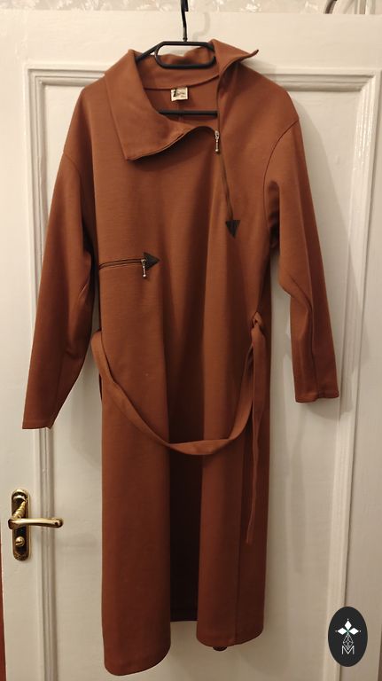 Kleit suurusele L-XL, trikotaaž viskoos, puuvill, polüester, väga meeldiv, pehme. Küljel lõhikud. Rinnaümbermõõt 108 cm (venib kuni 120), taljeümbermõõt 104 cm (115), puusaümbermõõt 106 cm (120), selja pikkus 100 cm, varruka pikkus kaelusest 65 cm.