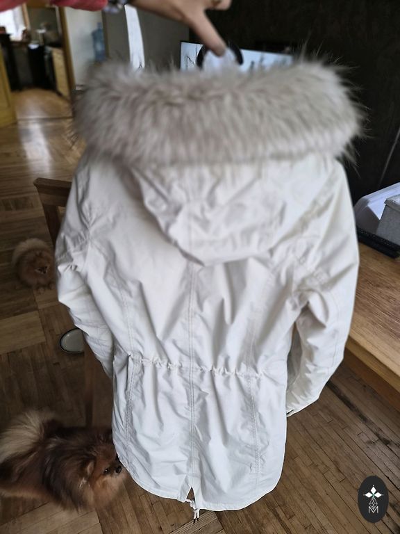 Jacket bought in Italy. Worn very little, no defects, fur in perfect condition. White polar fox, removable fur, jacket in two layers, which can be removed, also fur inside. Will be warm both in spring/autumn and in winter at -30. Closes with a zipper, fur folds nicely inside. Size indicated as 44, will fit from S-XL. Ties at the waist. 🌝❄️You can safely come and try it on site!