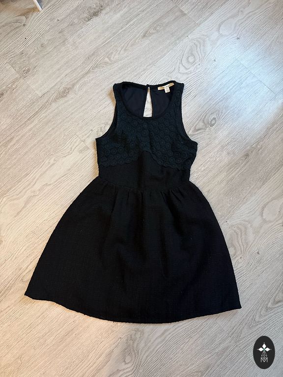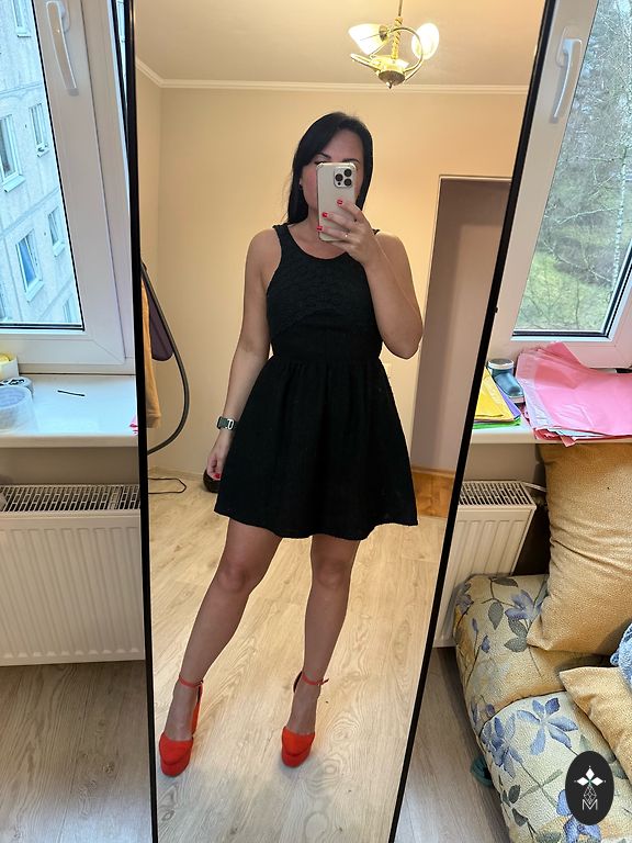 Kleitai ir šķēlums sānos, aizmugurē rāvējslēdzējs.Krūšu daļā ir dekors mazu spoguļu veidā.