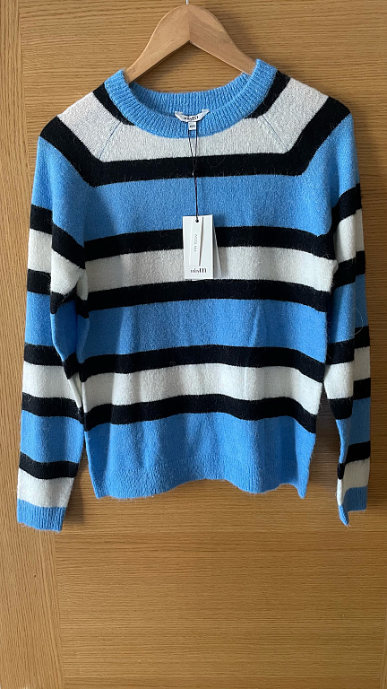 Pārdodu jaunu plānā adījuma džemperīti uz L izm. - starp padusēm 52, garums 58, piedurknes garums 63, starp pleciem 39, audums: 40% viskoze, 36%poliesters, 19% poliamīds, 5% kašmirs. Krāsa nedaudz gaišāka ar gaiši zilu toni, nevaru noķert īsto toni.