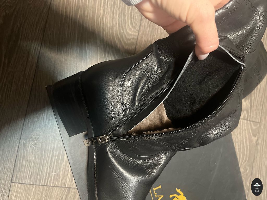 Odiniai batai su natūralaus kailio pamušalu, šilti. Batai geros būklės. Reguliuojamas bato apimtis. Guminės platformos aukštis – 9 cm. Kainos pagal andelemandele.lv kainoraštį.