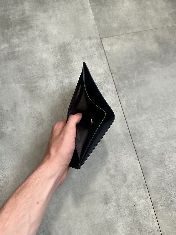 Цена в магазине 340 евро. Кошелек 4cc, изготовлен из черной кожи полного зерна с