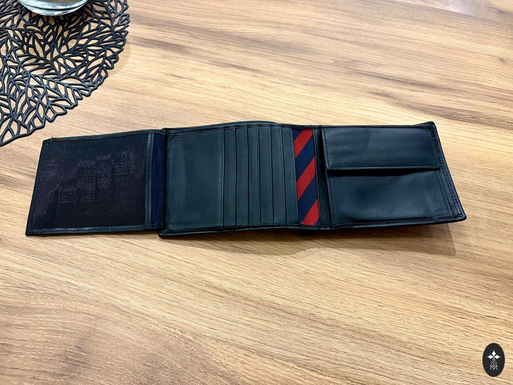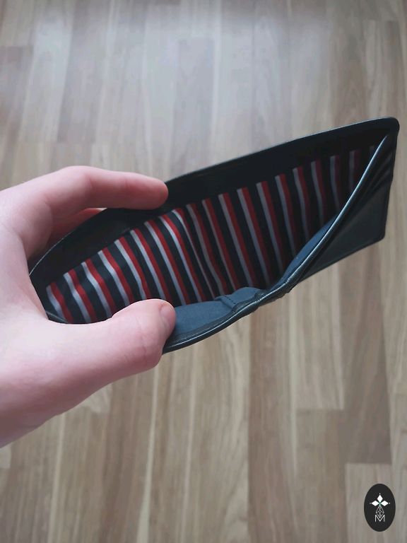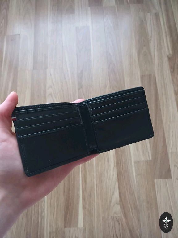 глубоким блеском Montblanc, жаккардовая подкладка с логотипом Montblanc и эмблемой Montblanc с кольцом с палладиевым покрытием, с 4 карманами для кредитных карт, отделением для банкнот, 4 дополнительными карманами. Размеры 90 x 15 x 125 мм.