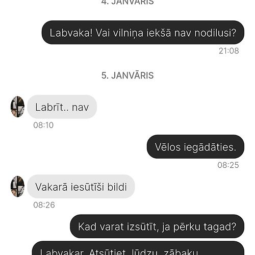 Kad teicu, ka vēlos preci atgriezt atpakaļ,ka tā neatbilst viņas teiktajam, saņēmu atvainošanos, ka neesot pievērsusi uzmanību šiem defektiem! Bet tas nav iespējams, jo tieši par šāda veida defektiem interesējos sarakstē. Šodien naudu saņēmu atpakaļ, bet nu cienītā mēģināja vilkt laiku, kā arī pārliecināt mani, ka priekš lietotas preces stāvoklis ir labs. NEIESAKU SADARBOTIES