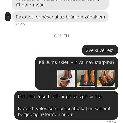 Komunikācija ar pārdevēju neveiksmīga, savu kļūdu neatzīst. Nākamajā dienā sūtīju viņai bildes ar reālo krāsu, kur pat zābaku zoles stipri atšķiras no ļoti gaišas līdz melnai.